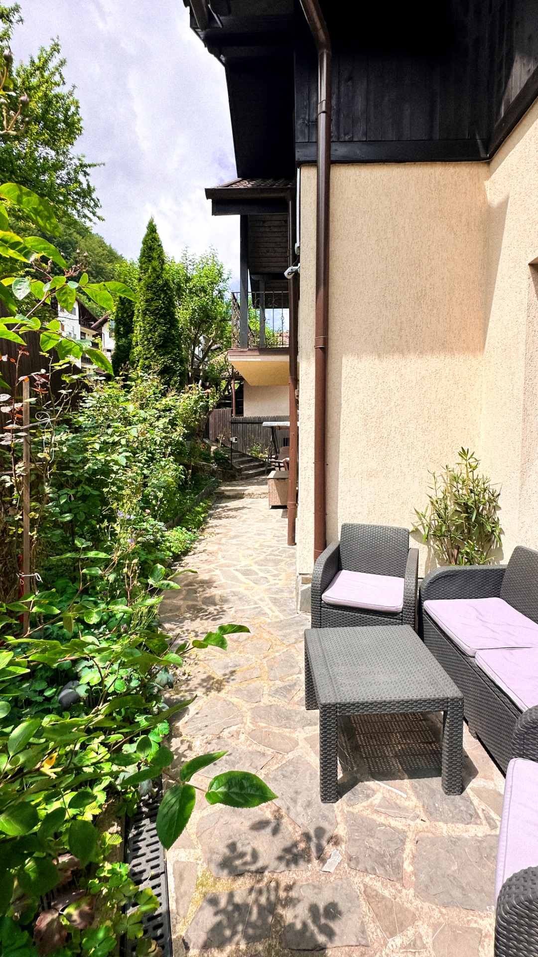 Aria House este o pensiune cochetă situată într-un colț liniștit al stațiunii Sinaia, perfectă pentru familii sau grupuri mici. Cu 4 camere duble confortabile, curte intimă cu foișor, grătar, plită și o zonă de relaxare în aer liber, casa oferă o experiență autentică de odihnă la munte.