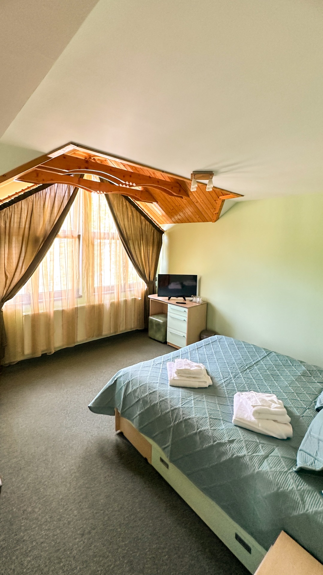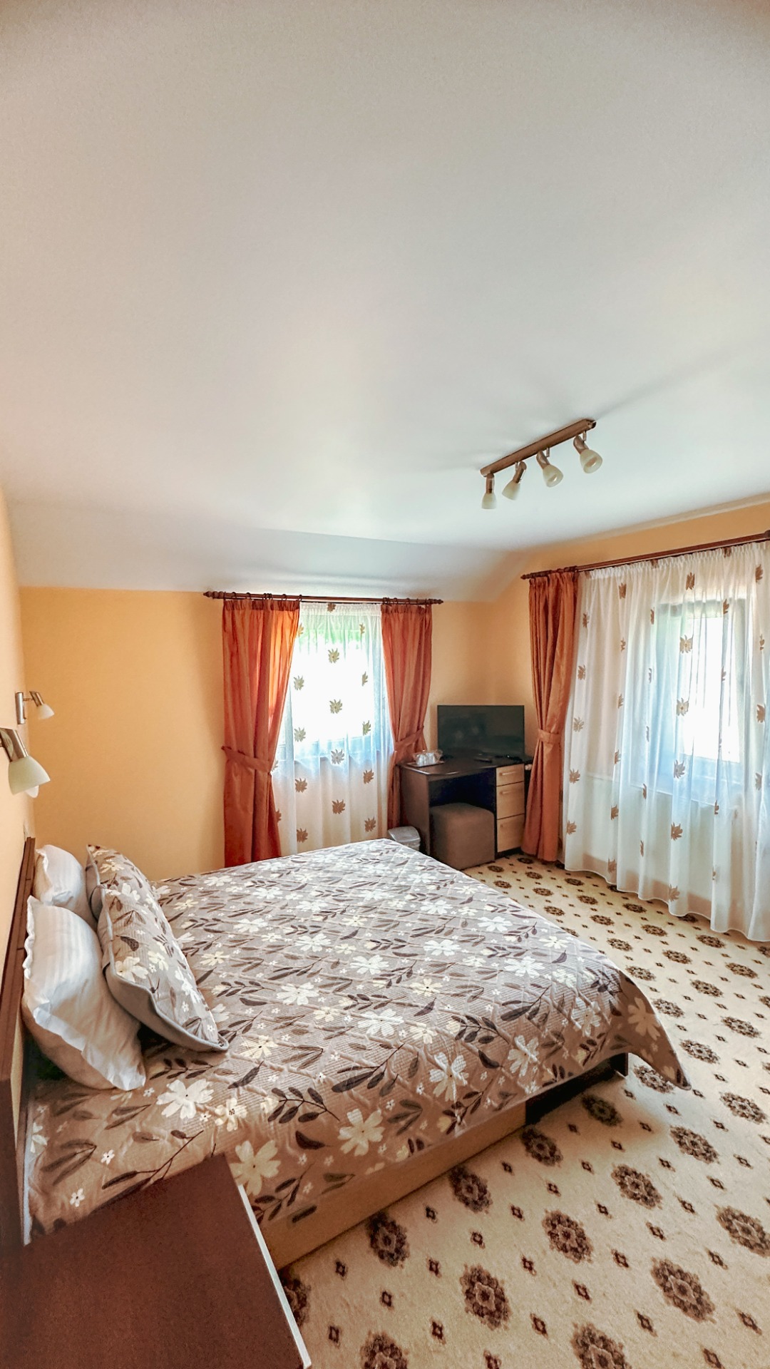 Toate camerele sunt spațioase, decorate simplu, cu accente calde și mobilier funcțional, ideale pentru cupluri sau familii.
